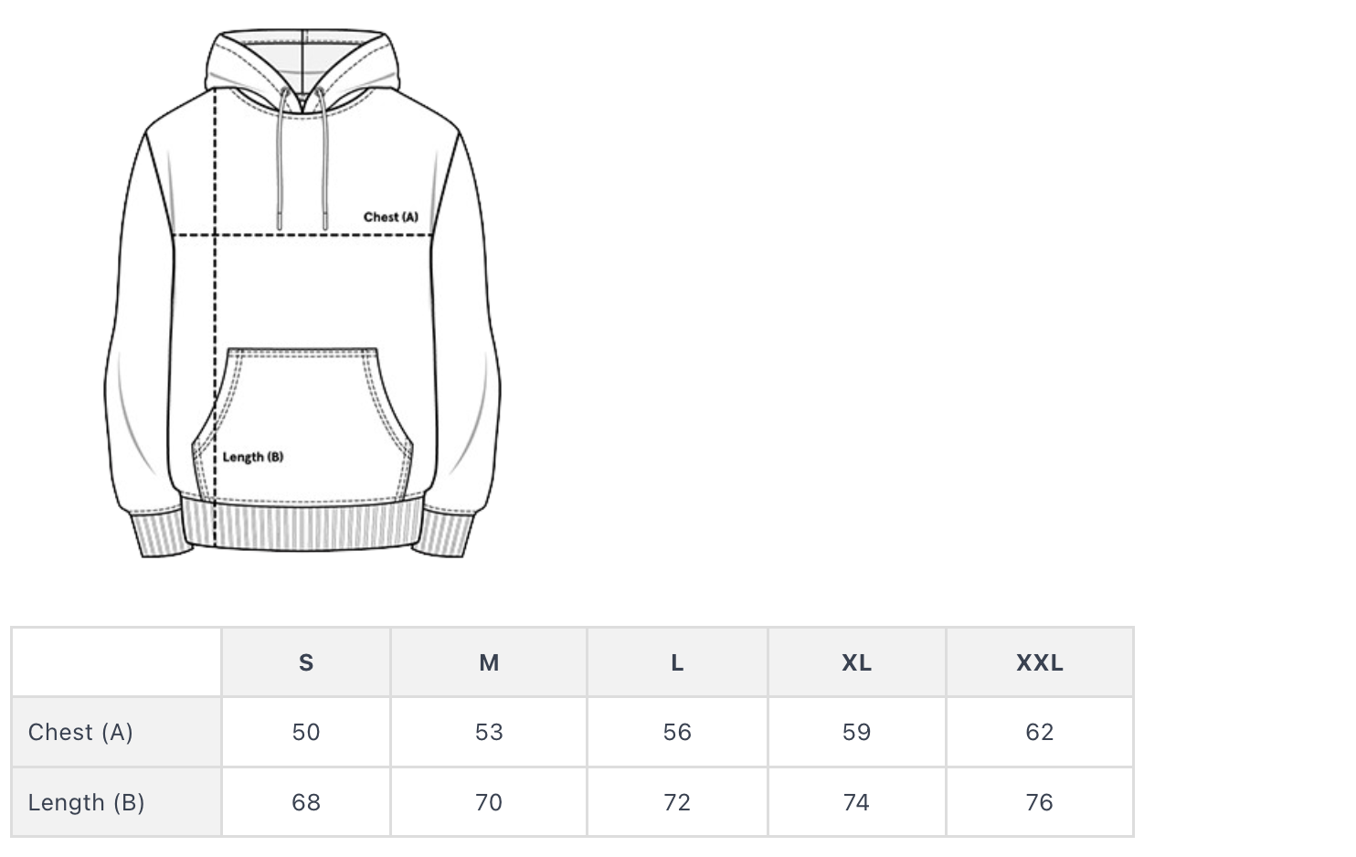 💡 Astuce ! Mesurez l’un de vos hoodies préférés et comparez-le avec notre tableau des tailles pour trouver la coupe oversize parfaite.