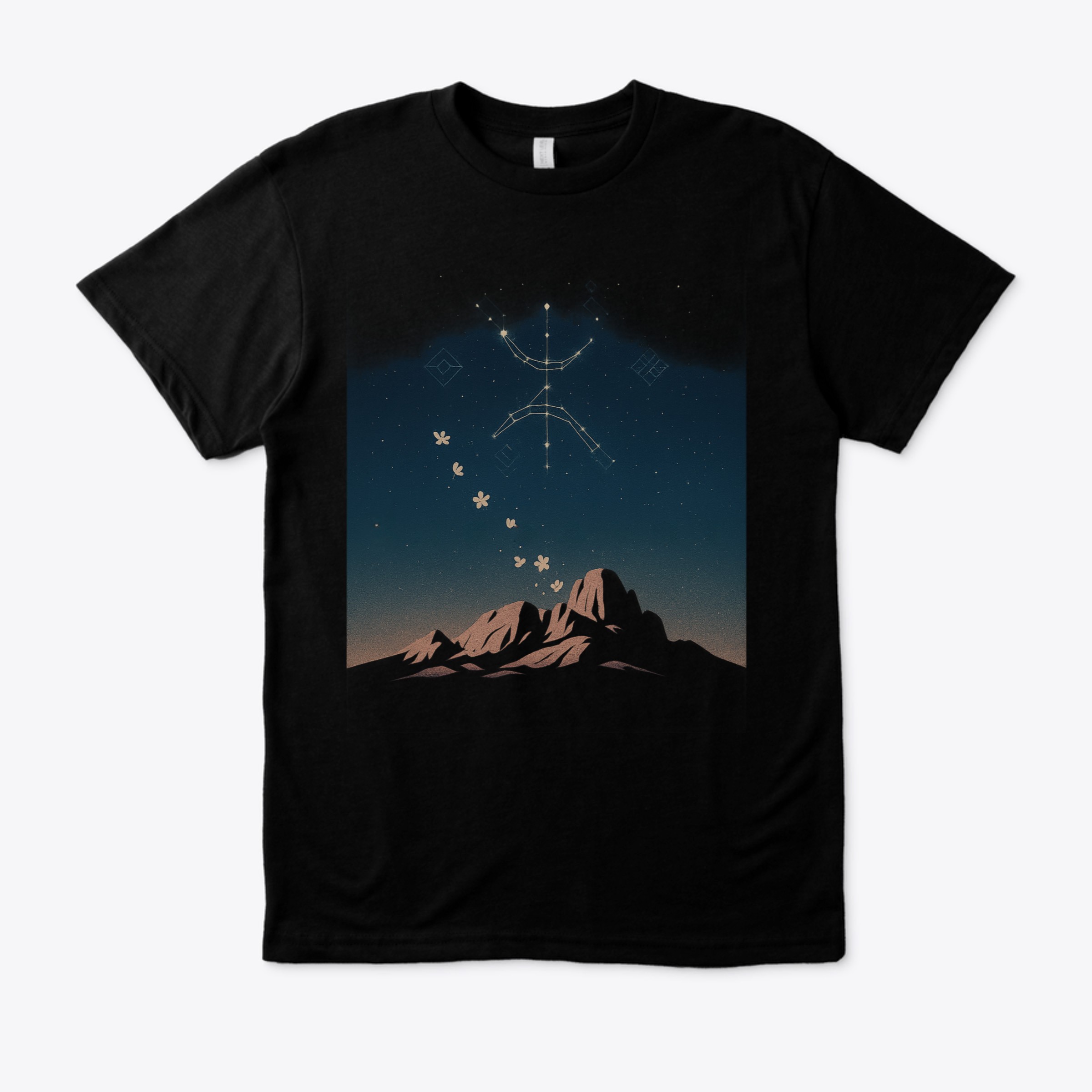 Ce t-shirt est une véritable œuvre d’art à porter. Inspiré par les “iytaren” (étoiles) et les montagnes de Tafraout, il symbolise la fierté amazighe et la connexion à ses racines.