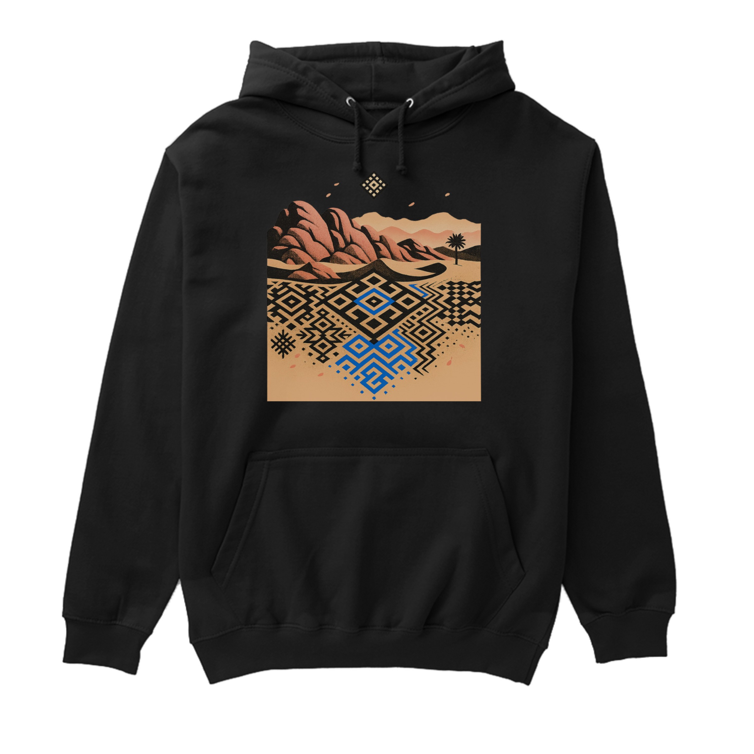 Un hoodie où le désert devient art. Inspiré des rochers de Tafraout et des motifs amazighs géométriques, ce design fusionne héritage et modernité dans une esthétique unique.