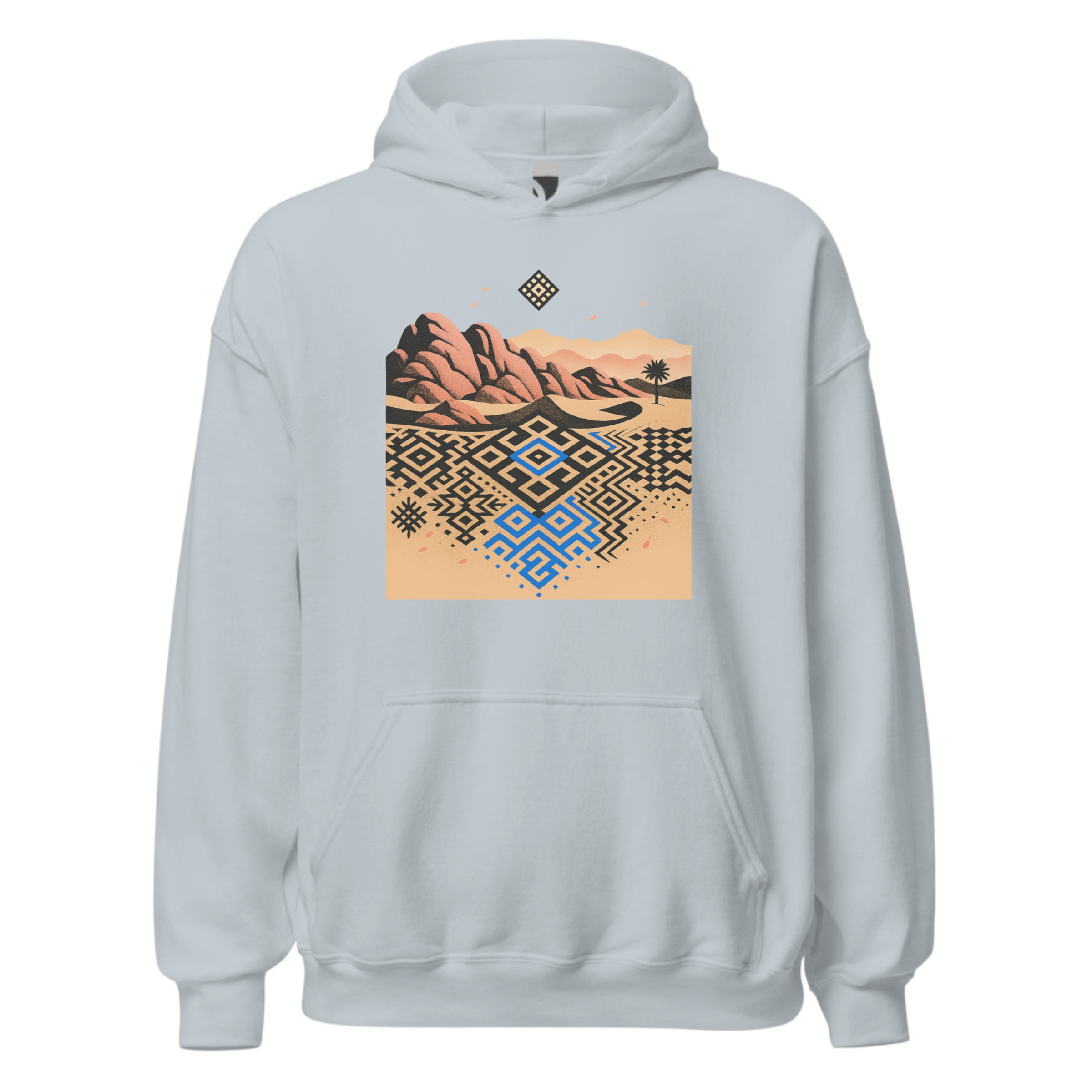 Un oversize hoodie où le désert devient art. Inspiré des rochers de Tafraout et des motifs amazighs géométriques, ce design fusionne héritage et modernité dans une esthétique unique.