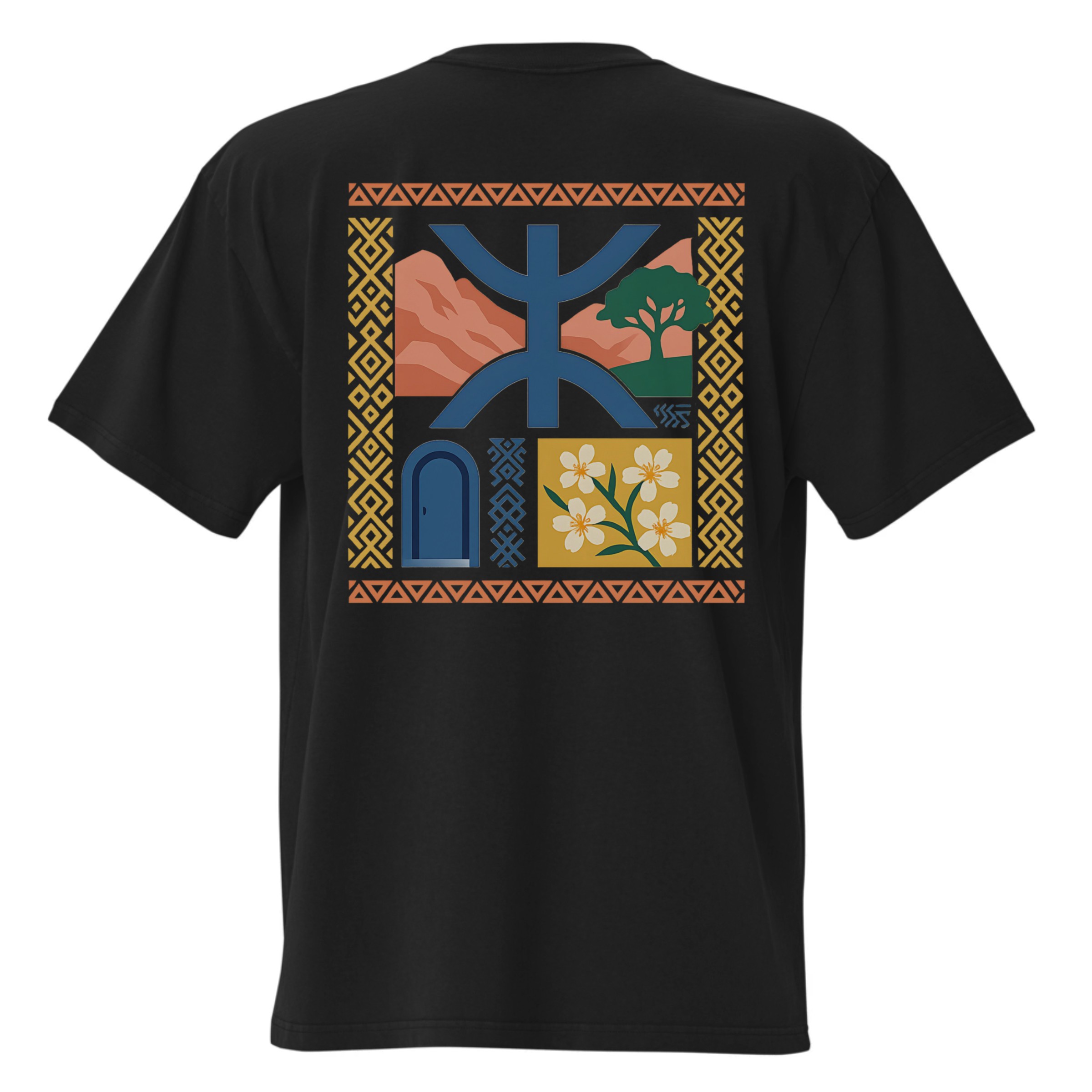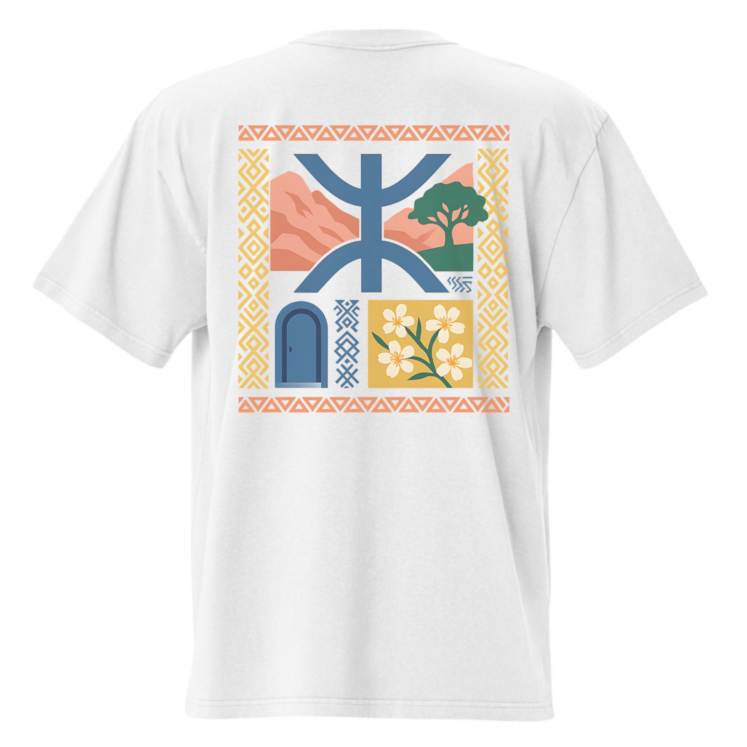 Ce t-shirt oversize offre une allure streetwear premium, sans compromis entre confort et identité. Le design au dos retrace les paysages et symboles de Tafraout, tandis que le petit imprimé à l’avant joue la carte de la subtilité.