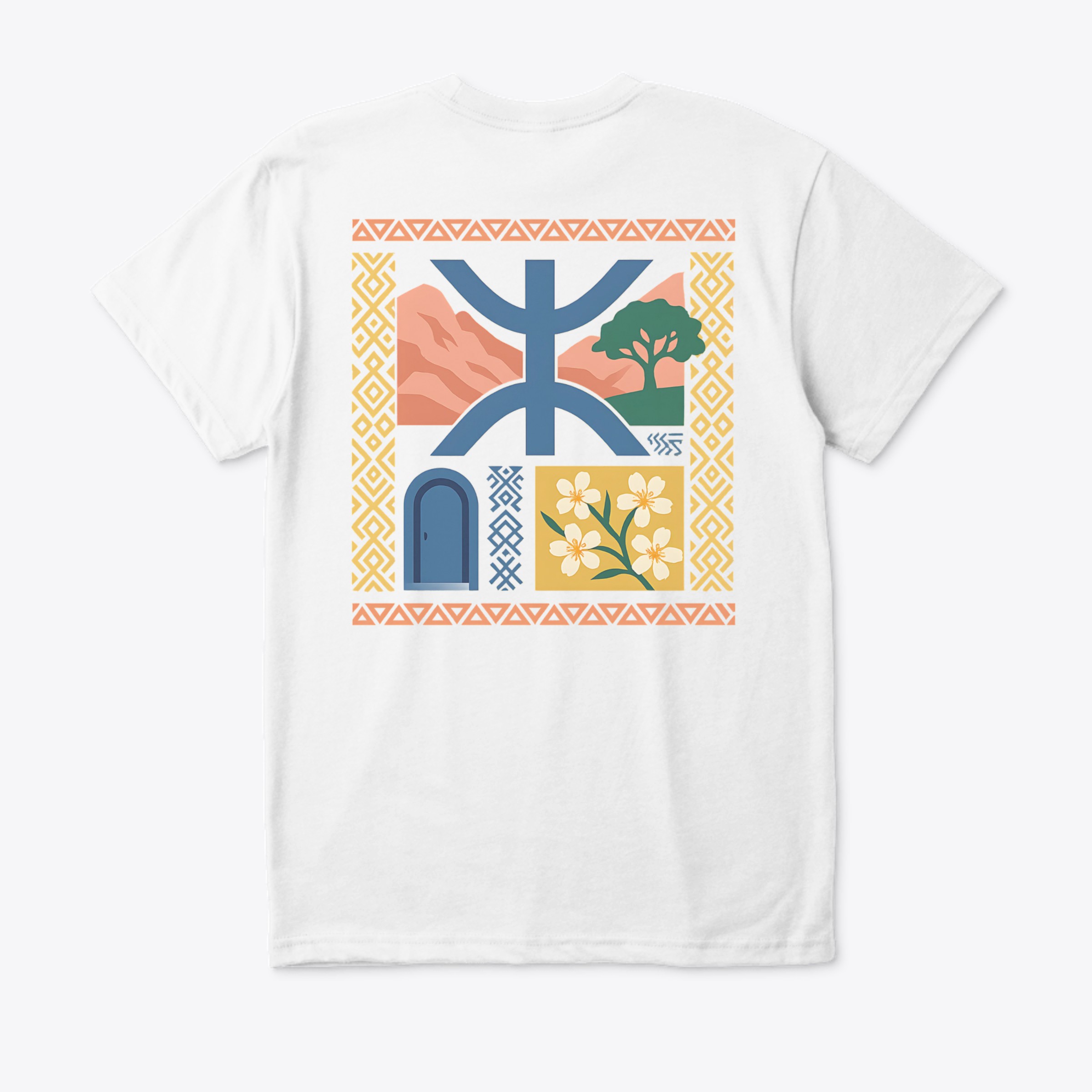 Plus qu’un simple t-shirt, c’est une déclaration de fierté. Inspiré par les montagnes et la culture de Tafraout, le grand motif au dos et le symbole raffiné à l’avant incarnent la force et la beauté de l’identité “amazigh”.