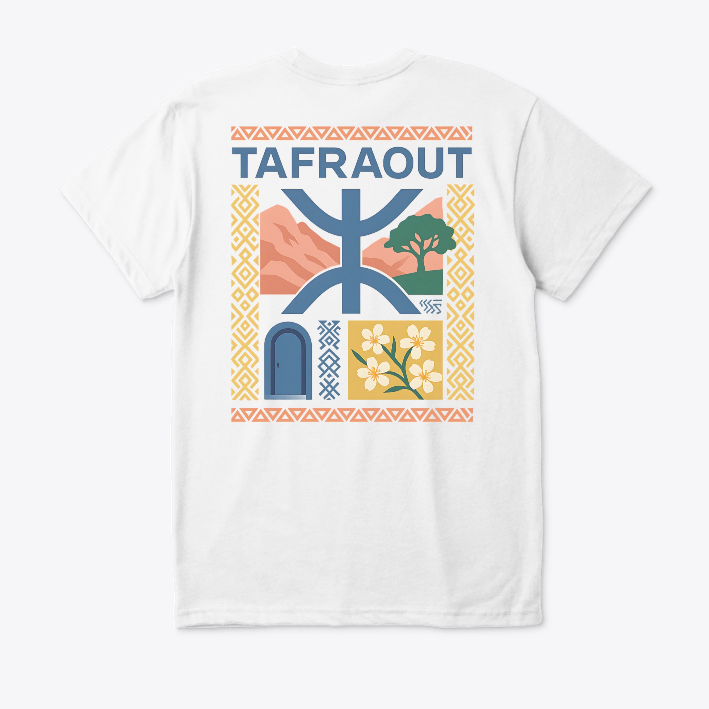 Plus qu’un simple t-shirt, c’est une déclaration de fierté. Inspiré par les montagnes et la culture de Tafraout, le grand motif au dos et le symbole raffiné à l’avant incarnent la force et la beauté de l’identité “amazigh”.